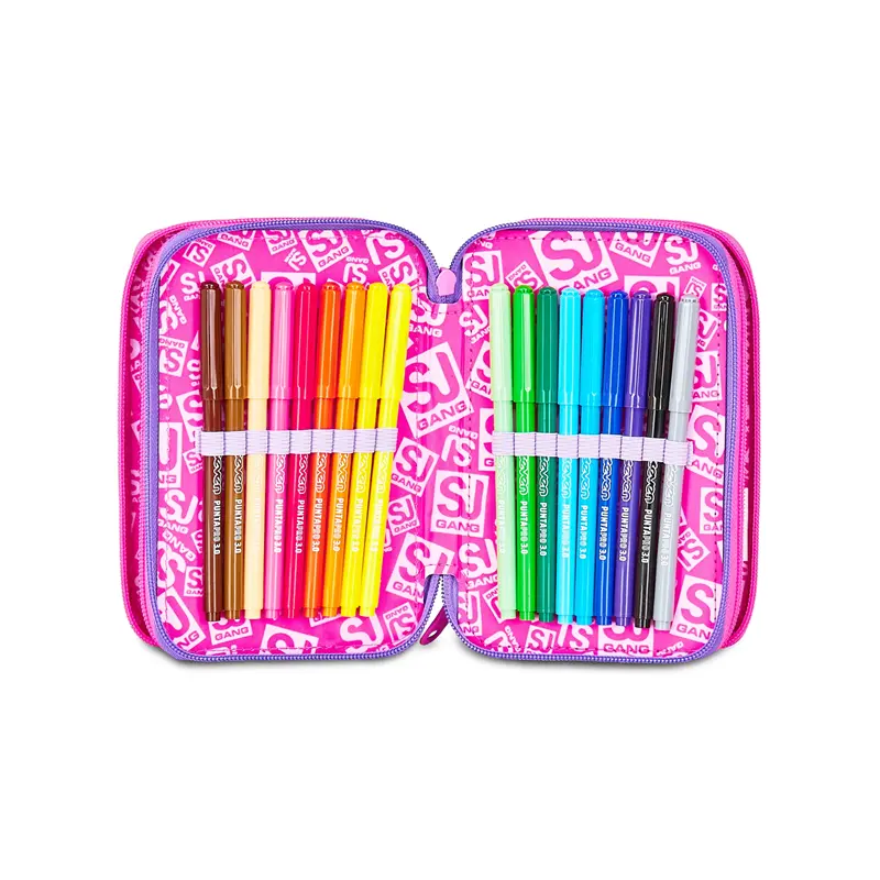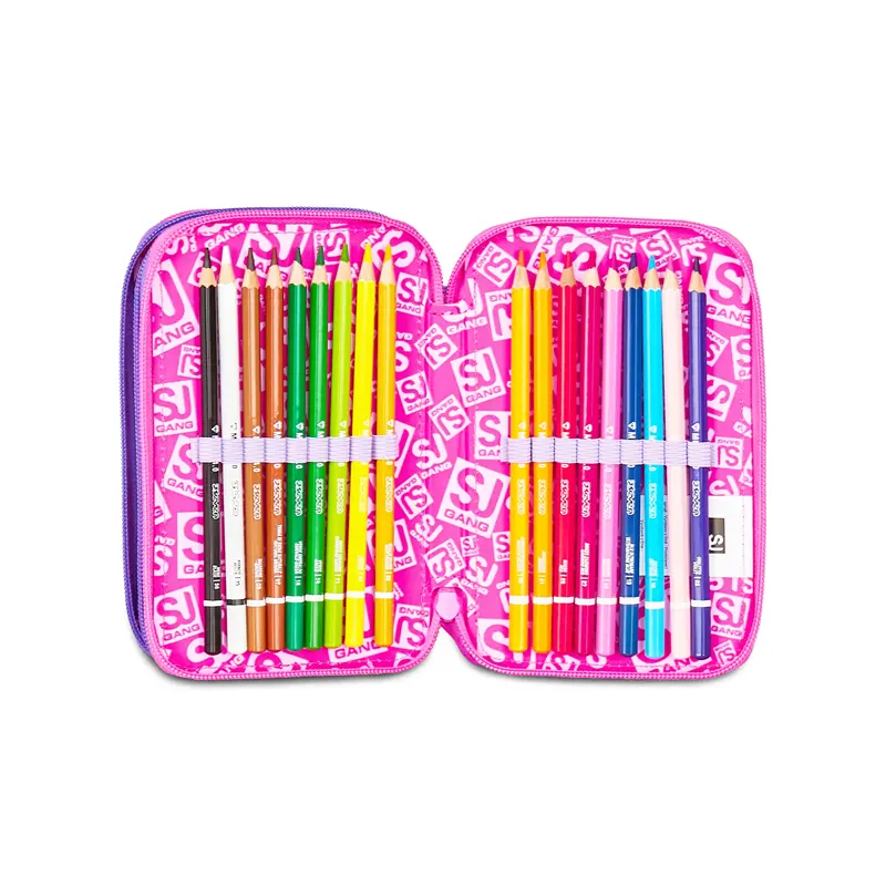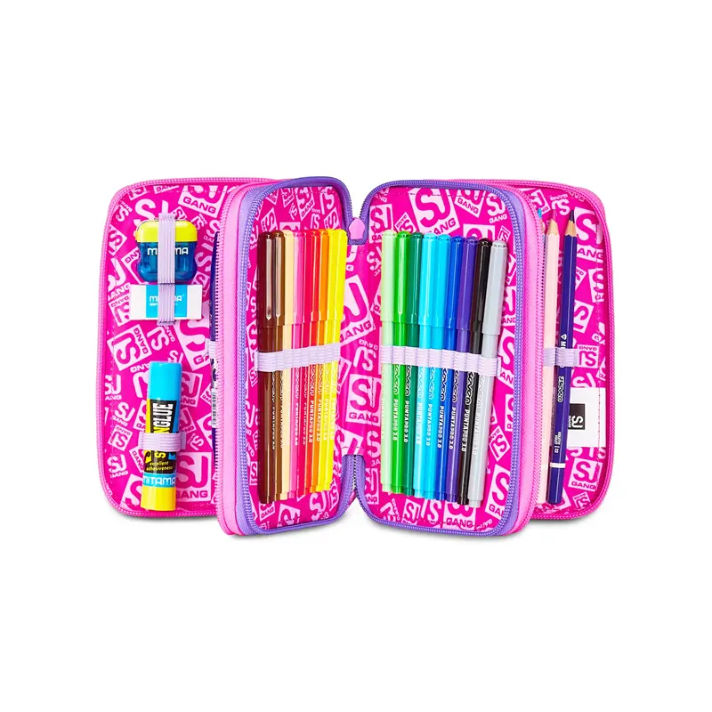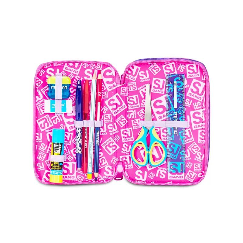 Ciao! Sono il coloratissimo Astuccio 3 zip SJ Gang. Dotato di 3 scomparti completi di tutto il materiale necessario per fare al meglio i tuoi lavori di scuola.