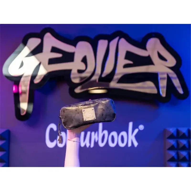 L’astuccio portapenne a due scomparti Green Quarz Geolier x Colourbook è l’accessorio scuola essenziale per piccoli e grandi fan dell’artista! Con due comode zip, puoi tenere in ordine penne, pennarelli e piccoli oggetti personali. Porta con te tutta la qualità Colourbook mixata perfettamente allo stile dell’artista napoletano.