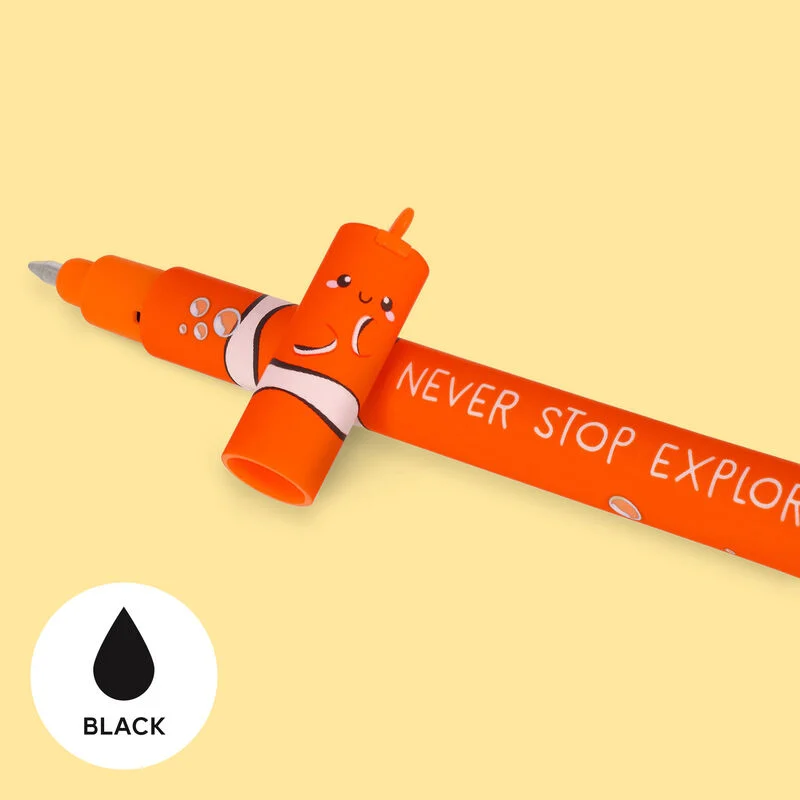Preparati a ogni refuso con il Set di 3 Penne Gel Cancellabili Under the Sea con Sea Turtle, Clownfish e Seahorse di Legami, con inchiostri turchese, nero e viola. Scrivi, cancella e scarabocchia tutte le volte che vuoi: grazie all’inchiostro termosensibile non devi buttare il foglio, e gli alberi ringraziano!