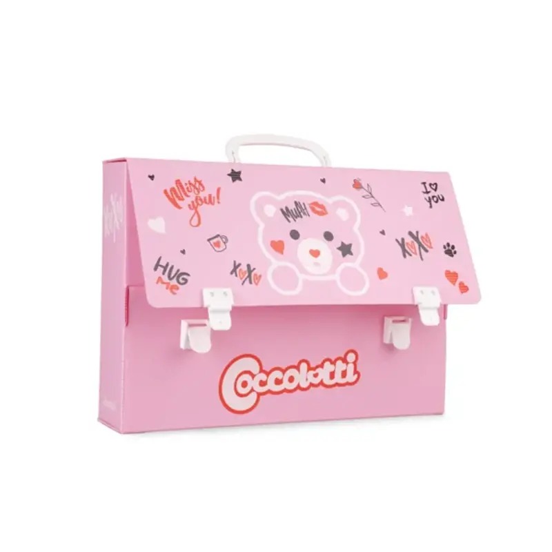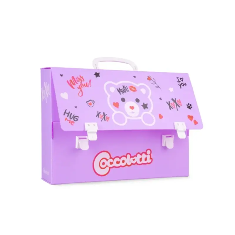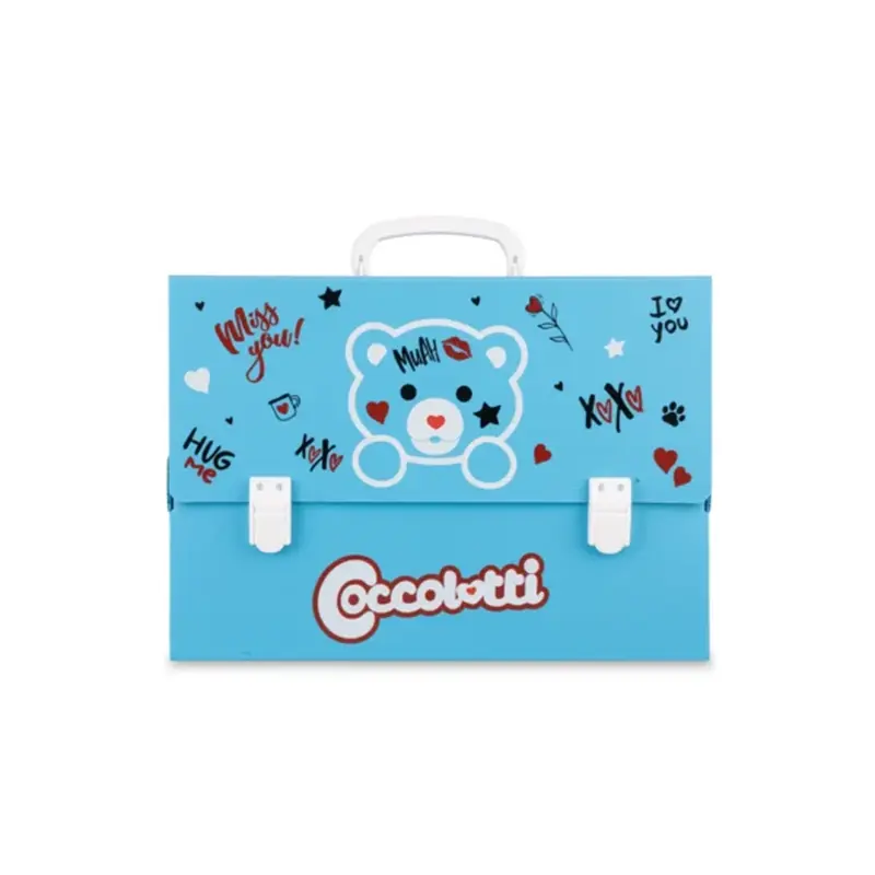 La valigetta portadisegni Coccolotti by Colourbook è un concentrato di tenerezza, grazie agli orsetti della collezione Love&Tell. Con dorso da 8 cm e decorata con le grafiche iconiche dei Coccolotti, la cartella tecnica è resistente e riesce a contenere tutti i disegni dell’anno scolastico. Manico e chiusure in bianco, prodotto interamente Made in Italy e realizzato su licenza ufficiale Giochi Preziosi.
