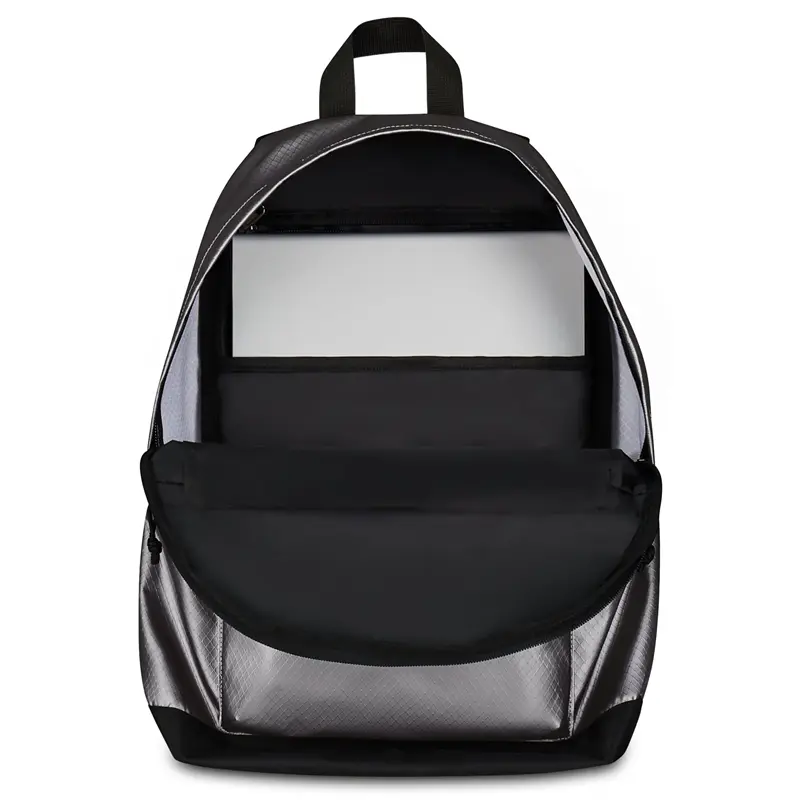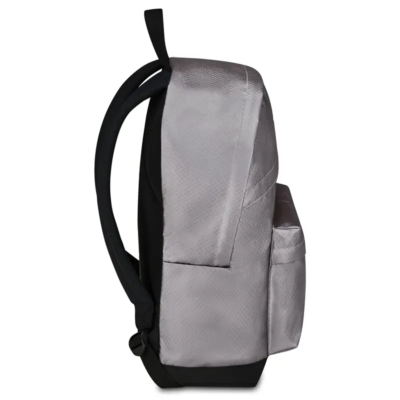 L’American Metallic è uno zaino mono scomparto pratico e compatto, con tasca interna per laptop fino a 13” e doppie tasche frontali. Realizzato in tessuto riciclato con spalmatura metallizzata e certificato GRS.
