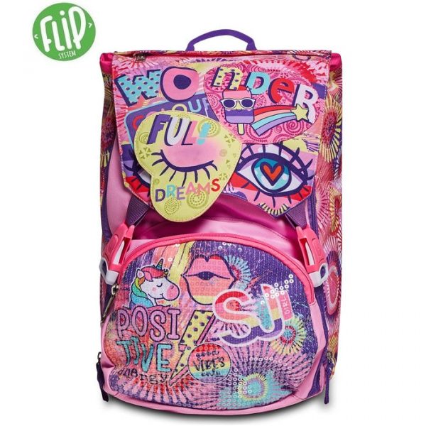 FACCE Girl, è lo zaino della gamma SJ GANG per la scuola e con cui puoi giocare Infatti puoi divertirti a illuminare tutte le volte che vuoi lo skate sulla pattina staccabile attivando il dispositivo luminoso effetto “lighting stitch” tramite pulsante ON/OFF!! Ho un doppio scomparto, di cui puoi aumentare facilmente la capienza tramite le zip laterali per poter accogliere e distribuire in modo ottimale libri, quaderni e tutto ciò che ti serve per la tua giornata. Inoltre, sono davvero comodo da indossare sulle spalle, grazie a schienale e spallacci confortevoli.