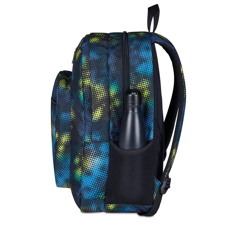 Controlla di aver messo quello che ti serve prima di uscire di casa, tanto sai che nel doppio scomparto del tuo nuovo zaino Seven Freethink c’è tutto lo spazio per mettere libri e quaderni, ma anche per un cambio da metterti per una partita al campetto nel tempo libero. Hai messo il PC o il tablet nello scomparto interno? E la borraccia nella tasca laterale? Bene! Finalmente puoi andare a prendere il bus per la scuola. C’è un bel pezzo fino alla fermata, ma grazie a schienale e spallacci confortevoli, lo zaino Freethink è molto comodo da indossare sulle spalle.